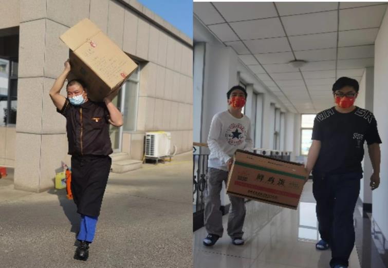 疫情防控下,供應(yīng)商的送貨車輛無(wú)法進(jìn)入園區(qū),只能將預(yù)定貨物放至門(mén)崗,需食堂工作人員自行推車到門(mén)崗提取物資,物資轉(zhuǎn)運(yùn)車緊缺,只能靠人力進(jìn)行搬運(yùn)。有人說(shuō),“疫情當(dāng)前,我們也想出一份力,這是工作,也是心意。相信大家團(tuán)結(jié)一致,一定可以打贏這場(chǎng)疫情防控戰(zhàn)?!笔赝嘀?,共克時(shí)艱成為了特殊時(shí)期大家的共同信念。