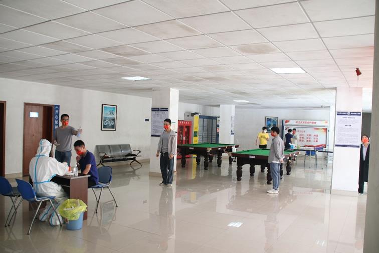 醫(yī)療保障組主要負責培訓樓全體人員的體溫監(jiān)測、核酸檢測組織、配合公共區(qū)域消殺等工作。每日上午9:00左右,“潛伏”在各樓層群內的志愿者準時發(fā)起群接龍,“1.XXX-房間號-綠碼……”,直至上午11:00左右,對未及時接龍的人員逐一確認健康碼信息,確保核酸檢測時黃碼/綠碼人員分開檢測。每天下午1:00左右,每個樓層依次響起“各位同事請注意,核酸檢測人員已抵達培訓樓,請各位于5-10分鐘后排隊下樓做核酸,請注意保持3米間距……”,組員內部分工明確,分別負責掃樓、掃碼、消殺、測溫、登記、維持秩序,各司其職。全員核酸檢測耗時逐步縮短,由第一次耗時近2小時到目前僅需50分鐘即可完成185人次核酸檢測,大幅減少了接觸時間,有效降低了傳播風險。