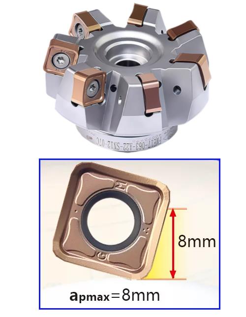 Vc=255m/min,fz=0.08mm/z,ap=5mm,ae=75mm