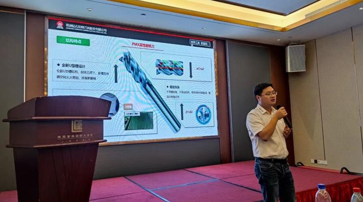 會議由廣東區(qū)域技術經理陳帥主持,廣東區(qū)域區(qū)域經理 葉宏致歡迎辭,他代表公司對參加會議的客戶朋友表示了感 謝。隨后,核心產品線市場部部長尹兵介紹了公司的發(fā)展歷 程,規(guī)模產品線市場部市場經理唐親君分享了整體硬質合金 刀具的新品與成功案例,規(guī)模產品線市場部部長張海對整體 刀具新品介紹進行了進一步講解,并對產品線的市場策略進 行了詳細的宣講。核心產品線市場部市場經理趙勛介紹了數 控車削、銑削刀片及淺孔鉆等新品,并分享了成功案例。最