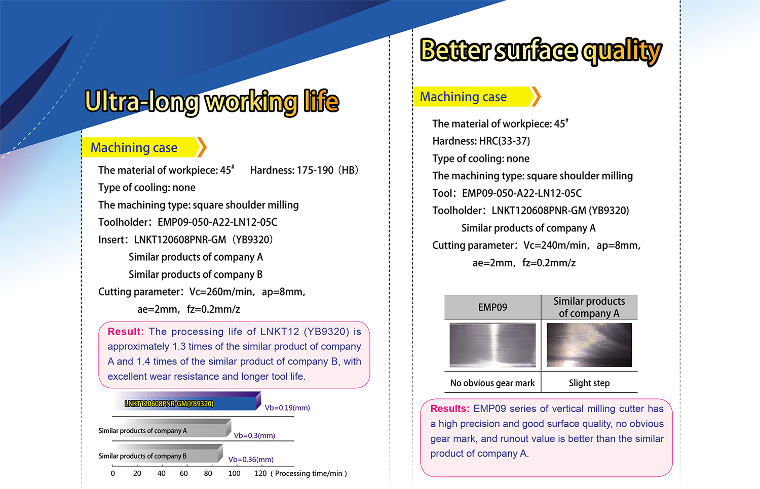 • The optimized material of cutter body with high strength and special coating treatment achieves morewear-resisting and longer life.
