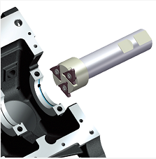 Cylinder holes rough boring special tool, with horizontally installed insert, large depth of cutting, large chips evacuation space facilitate smooth chip removal with high efficiency.